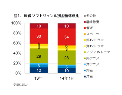HOME > ニュース > ホビー&カルチャーニュース BDの金額ベースシェアは44%に GfK発表の'14年上半期セル映像ソフト販売、売上低迷も下半期の上昇見込む ファイル・ウェブ編集部 2014年08月05日 映像ソフトのジャンル別金額構成比のグラフ この写真の記事へ 関連リンク 本件のニュースリリース(PDF)