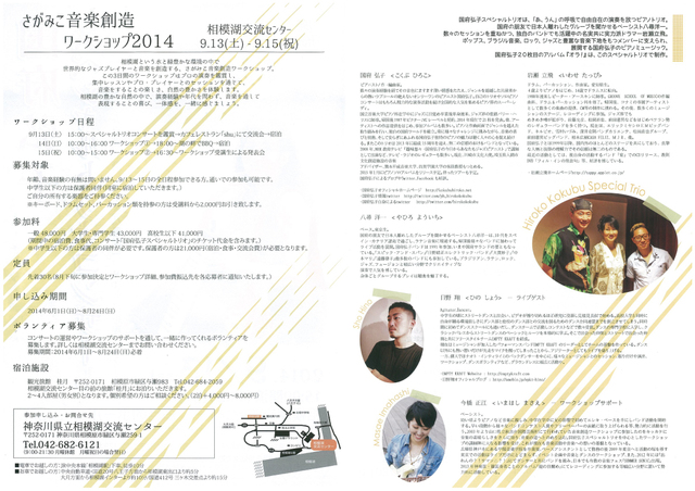 HOME > ニュース > ホビー&カルチャーニュース 世界レベルのプロミュージシャンとの3日間 ジャズピアニスト国府弘子のコンサートも堪能できるワークショップが相模湖で開催 季刊ネットオーディオ編集部 2014年08月06日 前の写真へ ワークショップの詳細 前の写真へ この写真の記事へ 関連リンク 神奈川県立相模湖交流センター