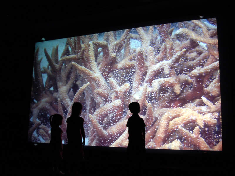 サンゴの産卵シーンなどを上映
