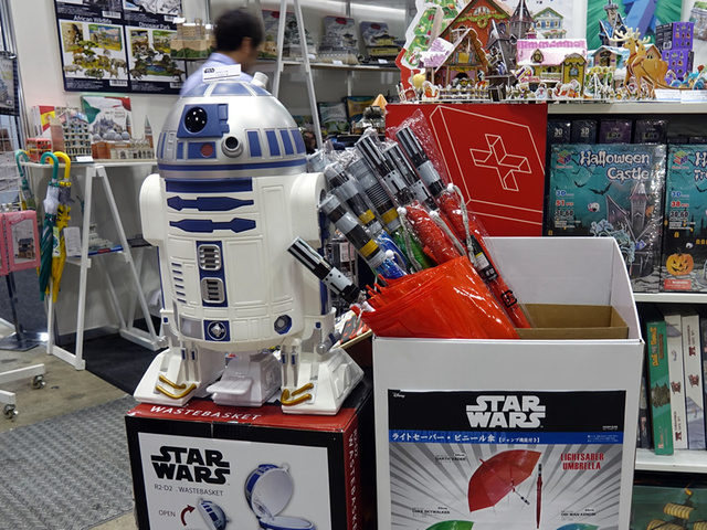R2-D2型のゴミ箱とライトセーバー型の傘