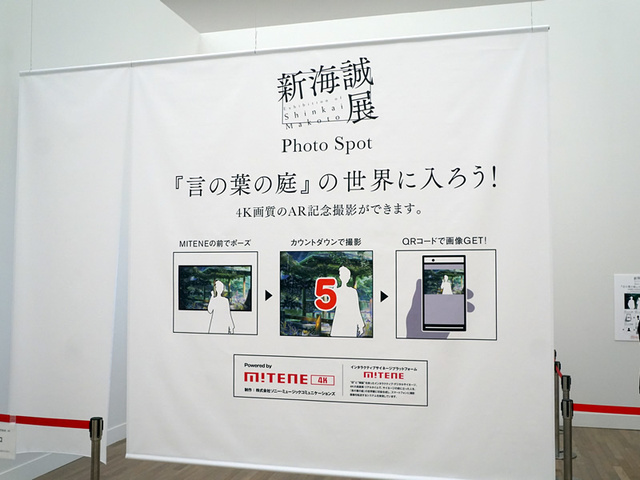 「言の葉の庭」の映像に自分が入り込んで写真を撮れるARシステムも。撮影した写真はその場で無料ダウンロードできる