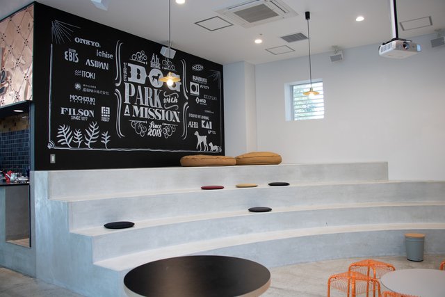 犬と一緒にくつろげるコミュニティスペース。イベントにも活用される