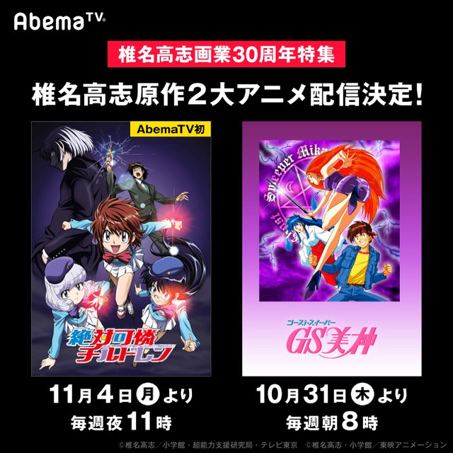 HOME > ニュース > ホビー&カルチャーニュース 『絶チル』は初登場 椎名高志画業30周年記念、『GS美神』『絶チル』がAbemaTVで全話配信 編集部:押野 由宇 2019年10月25日 前の写真へ 前の写真へ この写真の記事へ 関連リンク 『ゴーストスイーパー美神』配信ページ 『絶対可憐チルドレン』配信ページ