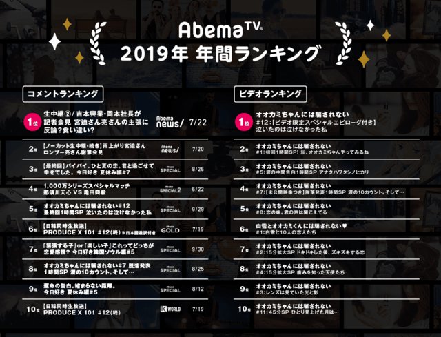 AbemaTV年間ランキング、宮迫/ロンブー亮「闇営業」会見が1位。2位も吉本・岡本社長会見