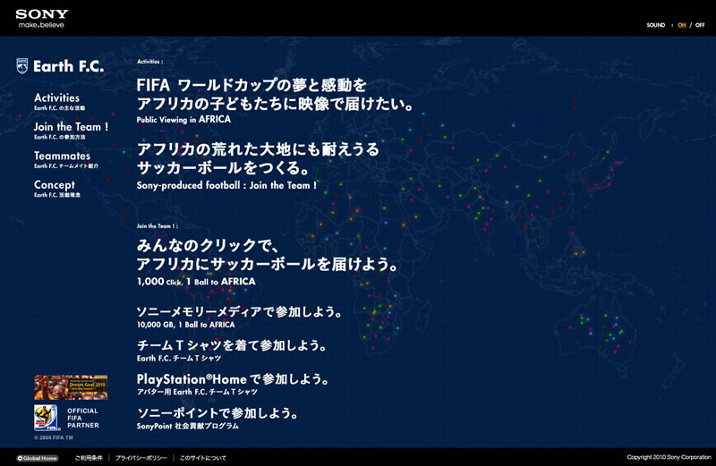 HOME > ニュース > ホビー&カルチャーニュース カメルーン/ガーナでソニー製品を使用してのパブリックビューイングなどを実施 ソニー・JICA・UNDP、南アW杯でHIV防止/啓蒙プロジェクトを実施 - 直販サイトで寄付も可能に ファイル・ウェブ編集部 2010年03月24日 前の写真へ 次の写真へ 特設サイトのトップページ 前の写真へ 次の写真へ この写真の記事へ 関連リンク 「Earth F.C.」公式サイト ソニースタイル 特設サイト ドネーションチケット購入ページ プロジェクトの詳細