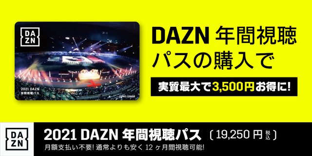 HOME > ニュース > ホビー&カルチャーニュース 購入金の一部は各クラブに還元 DAZN、最大3,500円お得な「年間視聴パス」。Jリーグ各クラブ通じて11/3より発売 編集部:小野佳希 2020年10月27日 購入金の一部はJリーグ各クラブに還元 この写真の記事へ 関連リンク DAZN ヘルプページ
