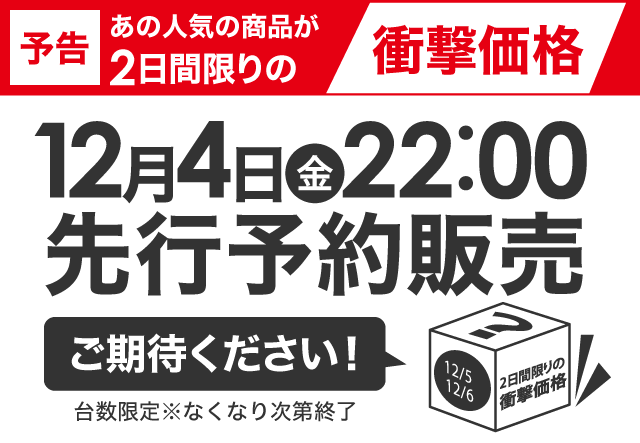 HOME > ニュース > ホビー&カルチャーニュース 対象商品は22時に発表 ビックカメラ、「あの人気商品が2日間限りの衝撃価格になる」セール。本日12/4 22時から先行予約販売 ファイルウェブ編集部 2020年12月04日 ビックカメラがセールを予告 この写真の記事へ 関連リンク ビックカメラ.com