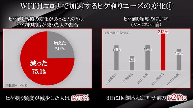 75%のユーザーでヒゲ剃りの頻度が減少