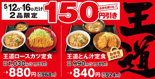 HOME > ニュース > ホビー&カルチャーニュース 5/12から販売。5/16までは150円引き かつや、カツ丼のおかずにカツが付く「王道ロースカツ定食」「王道とん汁定食」 ファイルウェブ編集部 2021年05月06日 次の写真へ 5/12から販売。5/16までは150円引き 次の写真へ この写真の記事へ 関連リンク かつや