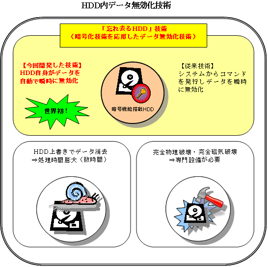 HOME > ニュース > ホビー&カルチャーニュース 盗難時の情報漏洩などを防ぐ HDDを取り外すと記録データが自動的に無効化される技術、東芝が開発 ファイル・ウェブ編集部 2010年08月10日 本技術の概要 この写真の記事へ 関連リンク 本件のニュースリリース