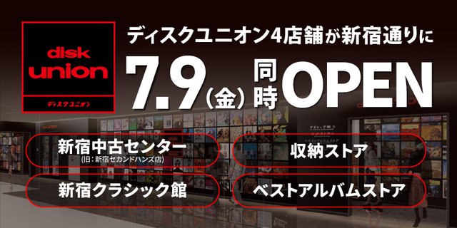 ディスクユニオン、新宿通りに4店舗を新たにオープン。7/9(金)から
