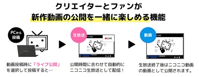 ニコニコ動画、新機能「ライブ公開」。動画公開と同時にニコ生配信