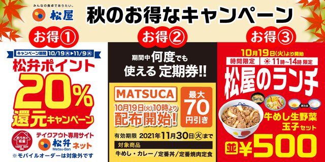 松屋、“豪華3本立て”「秋のお得なキャンペーン」を10/19より開催