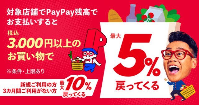 HOME > ニュース > ホビー&カルチャーニュース 新規ユーザーは10% PayPay、スーパーで3,000円以上買うと最大5%が戻ってくるキャンペーン ファイルウェブ編集部 2021年11月05日 この写真の記事へ 関連リンク 本件のニュースリリース