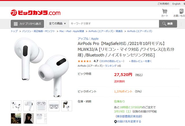 HOME > ニュース > ホビー&カルチャーニュース エアコン1万円引きを先行開催 ビックカメラcom、3/19 - 3/21 3連休限定の「ビック得売デー」。AirPods Pro割引なども ファイルウェブ編集部 2022年03月18日 AirPods Proの割引販売も この写真の記事へ 関連リンク ビックカメラ・ドットコム