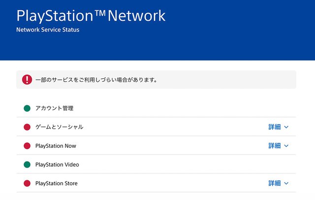 HOME > ニュース > ホビー&カルチャーニュース Storeでの購入もできず PlayStation Networkに障害発生、PS5/PS4などのゲームプレイにも影響【復旧済】 PHILE WEB編集部 2022年03月23日 PlayStation Networkのステータス。「ゲーム&ソーシャル」などが使えなくなっている この写真の記事へ 関連リンク PlayStation Networkのステータス PlayStation
