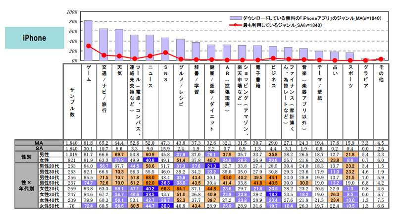 人気のiPhoneアプリジャンルは「ゲーム」が圧倒的