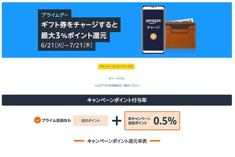 HOME > ニュース > ホビー&カルチャーニュース 還元率の異なるキャンペーンが並行展開中 プライムデー先行、Amazonギフト券チャージで最大3.0%還元中。ただしトラップあり ファイルウェブ編集部 2022年07月06日 次の写真へ ギフト券チャージで最大3%ポイント還元と2.5%還元の2種類のキャンペーンが並行展開中 次の写真へ この写真の記事へ 関連リンク Amazonギフト券 チャージで最大3%還元キャンペーンの詳細 Amazonギフト券 配送タイプキャンペーンの詳細