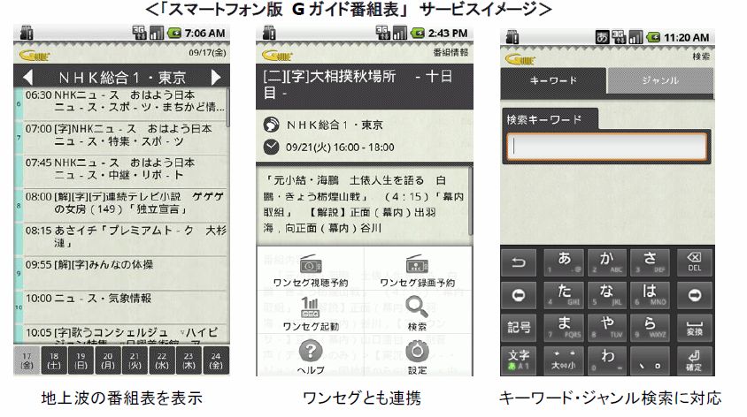 HOME > ニュース > ホビー&カルチャーニュース 他機種ユーザー向け提供は調整中 Android2.2対応のスマホ版「G ガイド番組表」が登場 ファイル・ウェブ編集部 2010年12月17日 スマートフォン版Gガイド番組表のサービスイメージ この写真の記事へ 関連リンク 本件のニュースリリース