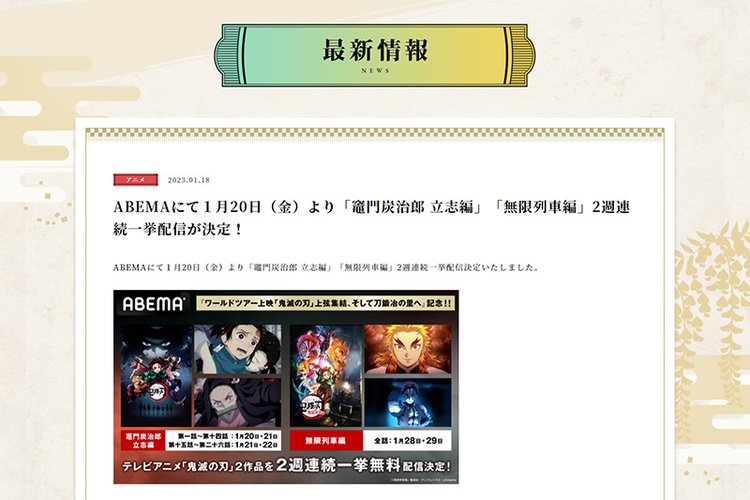 ABEMA、『鬼滅の刃』炭治郎誕生日特番やTVアニメ全話一挙配信
