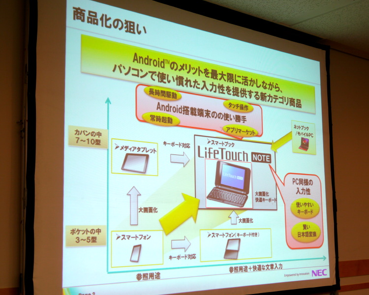 HOME > ニュース > ホビー&カルチャーニュース 日本語入力の快適さにこだわった NEC、Android搭載の“現代版モバイルギア”「LifeTouch NOTE」を発売 ファイル・ウェブ編集部 2011年02月15日 前の写真へ 本機を市場投入するねらい 前の写真へ この写真の記事へ 関連リンク NEC 本製品のニュースリリース