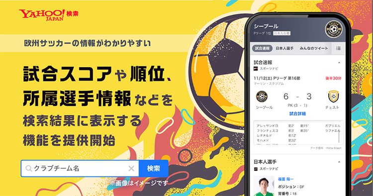 Yahoo!検索、欧州サッカーリーグの試合結果や選手情報を検索結果に表示する新機能