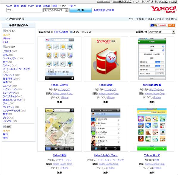 iPhone/iPad向けアプリを検索できる「Yahoo!アプリ検索」が登場