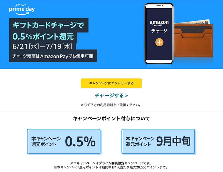 HOME > ニュース > ホビー&カルチャーニュース キャンペーンには忘れずエントリーしよう Amazonプライムデー「先行セール」は何が安くなる? 開催直前の今やるべきことは ファイルウェブ編集部 2023年07月08日 前の写真へ 「Amazonギフトカードチャージで0.5%ポイント還元」 前の写真へ この写真の記事へ 関連リンク Amazonプライムデー会場