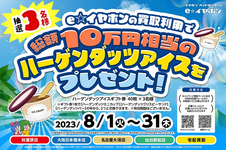 HOME > ニュース > ホビー&カルチャーニュース 8月31日(木)まで e☆イヤホン、抽選で総額10万円相当の「ハーゲンダッツアイスギフト券」が当たるキャンペーン 編集部 : 伴 修二郎 2023年08月01日 「ハーゲンダッツアイスギフト券」が当たるキャンペーン この写真の記事へ 関連リンク 本キャンペーン特集ページ e☆イヤホン