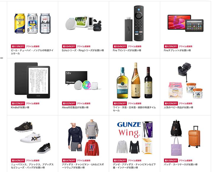 HOME > ニュース > ホビー&カルチャーニュース チャージやサブスク加入も忘れずに 【厳選】Amazonプライム感謝祭、3つの「やっておかないと損しそう」なこと PHILE WEB編集部 2023年10月14日 Amazonプライム感謝祭のおすすめセール商品 この写真の記事へ 関連リンク Amazonプライム感謝祭 「Kindle Unlimited 」3ヶ月99円キャンペーン 「角川シネマコレクション」2ヶ月の月額99円