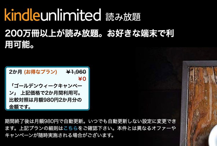 HOME > ニュース > ホビー&カルチャーニュース 表示されたらキャンペーン対象 試さないと損!Amazon読み放題「Kindle Unlimited」が2ヶ月0円のGWキャンペーン PHILE WEB編集部 2024年04月13日 この画面が表示されたらキャンペーンの対象だ この写真の記事へ 関連リンク AmazonでKindle Unlimitedを見る