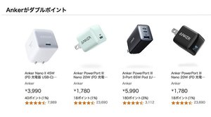 HOME > ニュース > ホビー&カルチャーニュース 充電関連の製品が数多く登場 Amazon、今週末は「ダブルポイント祭り」。Anker製品などポイント2倍還元 PHILE WEB編集部 2024年09月06日 Ankerからは充電関連の製品が数多くラインナップ この写真の記事へ 関連リンク Amazon「ダブルポイント祭り」