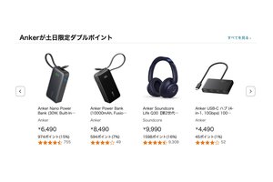 HOME > ニュース > ホビー&カルチャーニュース USB充電器やUSBケーブルなども対象 Amazon、「ダブルポイント祭り」を今週末に開催。Ankerヘッドホンなどがポイント2倍に PHILE WEB編集部 2024年11月15日 人気のAnker製品が多数対象に この写真の記事へ 関連リンク Amazon「ダブルポイント祭り」