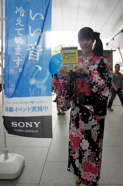 HOME > ニュース > ホビー&カルチャーニュース 「涼音」体験イベント ソニー、浴衣美女がスマホ用ヘッドホンをオススメする巡回イベントを開始 ファイル・ウェブ編集部 2011年07月22日 前の写真へ 特製うちわとキャンペーンチラシがプレゼントされる 前の写真へ この写真の記事へ 関連リンク イベントの詳細 ソニーストアの製品情報