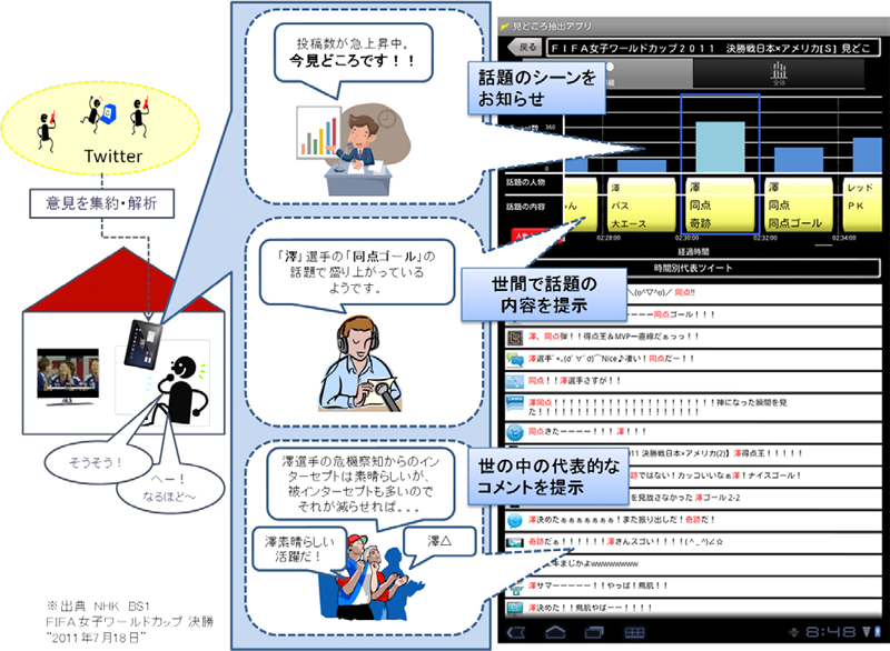 HOME > ニュース > ホビー&カルチャーニュース 番組とつぶやきを一緒に楽しめる KDDI研、テレビの話題シーンが一目で分かるtwitter解析システムを開発 ファイル・ウェブ編集部 2011年09月27日 次の写真へ アプリでの視聴イメージ 次の写真へ この写真の記事へ 関連リンク 本件のニュースリリース