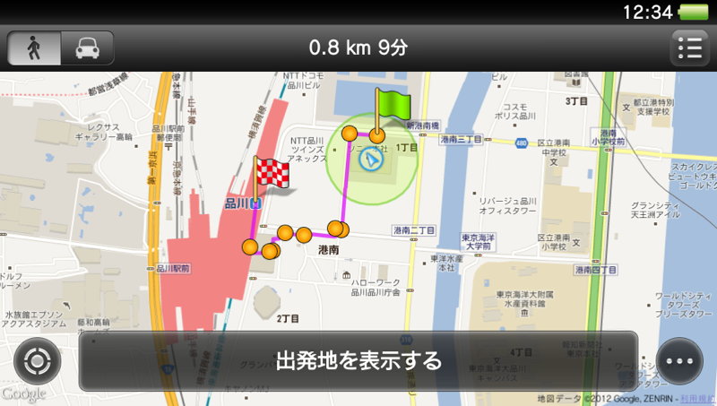 「マップ」でルート探索を行ったところ