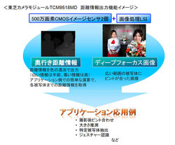 東芝は、スマートフォンやタブレットPC向けに、1/4インチ500万画素のCMOSイメージセンサを2個搭載し、被写体との距離を撮影と同時に計測、出力できるカメラモジュール「TCM9518MD」を製品化し、来年1月にサンプル出荷、4月に量産を開始する。サンプル価格は5,000円。