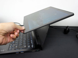 特徴的なビューモードは、主に映像視聴での使用を想定したモード。VODやネット動画、nasneとの連携による録画番組視聴などに最適なスタイルだとしている。なお、通常のキーボードモード時と筐体の向きを逆向きで使用することになることに配慮し、スピーカーもボディ側面に配置。L/Rも自動で切り替わるようになっている。そのほか誤回転を防止するためのディスプレイロックスイッチも備えている。