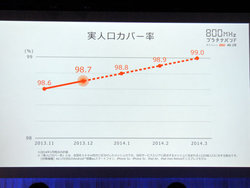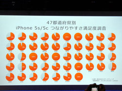 エリアの広さについては、LTEでの800MHzプラチナバンドの実人口カバー率が3月末には99%に達することを紹介。全国の772大学1,168キャンパスでLTEが使えることも紹介し、これからの進学シーズンでの需要に応えられることもアピールしたほか、全国都道府県別のiPhone 5s/5cのつながりやすさ満足度調査結果でも良い結果を得られているともした。
