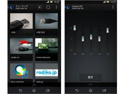 ワイヤレスで本体の各種操作に加え、ホームサーバーの楽曲ファイルの検索・再生など、高機能リモコンとして利用可能。各種イコライザーなども調整できる。