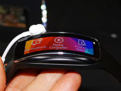 ■曲面ディスプレイ搭載のリストバンド型端末「Gear Fit」も