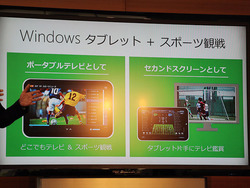 金子氏によれば、女性ターゲットを狙った「旅レット」キャンペーンを実施した際にも好評だったとのことで、国内の家電量販店販売の7〜11.6インチタブレット市場におけるWindowsタブレットのシェアは、'14年1Qの時点で30.5%にまで拡大。金子氏は「ターゲットにあったシナリオベースの提案がとても効果的だった。“旅レット”に続く“ユーザー目線のシナリオ”第二弾が、今回のすぽレット。スポーツ界では日本選手がグローバルに活躍していることもあり、いつでもどこでもスポーツ観戦をしたいというニーズが高まってきている。そんなユーザーの思いに応えるサービス」と紹介した。