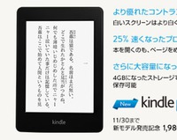 Wi-Fiモデルのみだが、Kindle Voyageと同様、キャンペーン情報表示モデルと非表示モデルを用意。キャンペーン表示モデルは6,980円、非表示モデルは8,980円となる。