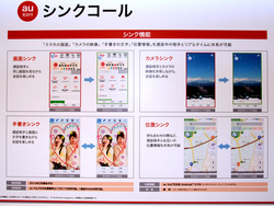 「シンクコール」は、VoLTEによる通話中に、自分の画面を通話相手の画面に表示する「画面シンク」や、カメラで映している映像を相手の画面に表示する「カメラシンク」など4つの機能を搭載。いずれも基本料金などは不要で、対応端末(現時点では今回発表の2モデル)を持っていれば無料で利用できる。サービス提供は2015年2月からアプリ配布開始を予定している。