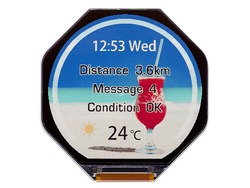 スマートウォッチなどの腕時計型ウェアラブルデバイス向けの反射型メモリ内蔵カラー液晶モジュール。画面は丸型で、サイズは3.4cm(1.34型)。画素数は320×300で、画素密度が238ppi。
