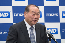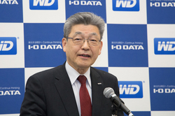 続いてアイ・オー・データ機器 代表取締役社長の細野昭雄氏が登場。アイ・オー・データの外付けドライブへの取り組みの歴史を説明した上で、WD社とのこれからの取り組みについて説明を行った。