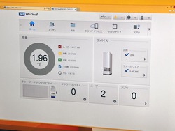 PCでは、同一ネットワーク内からブラウザベースでWD Cloud内のコンテンツ管理が可能。管理画面のトップページからは、WD Cloud内の容量などがすぐに確認できるようになっている。