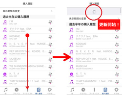 その他、購入履歴の更新機能の追加やシャッフル/リピート機能の色味の変更も行われている。