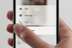 3Dタッチではたとえば、アプリのアイコンを強く押すことで操作のショートカットメニューを表示することが可能。これにより目的の操作へ素早くたどり着ける。ほかにも様々な応用が可能で、スマートフォンの使い勝手をさらに高める技術としてアピールしている。