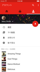 アプリ最新ver.10.38では、上部に太く赤いバーを配置したデザインとなり、「ホーム」「登録チャンネル」「アカウント」のアイコンをタップするか画面をスワイプすると、目的のページが表示されるようになった。
